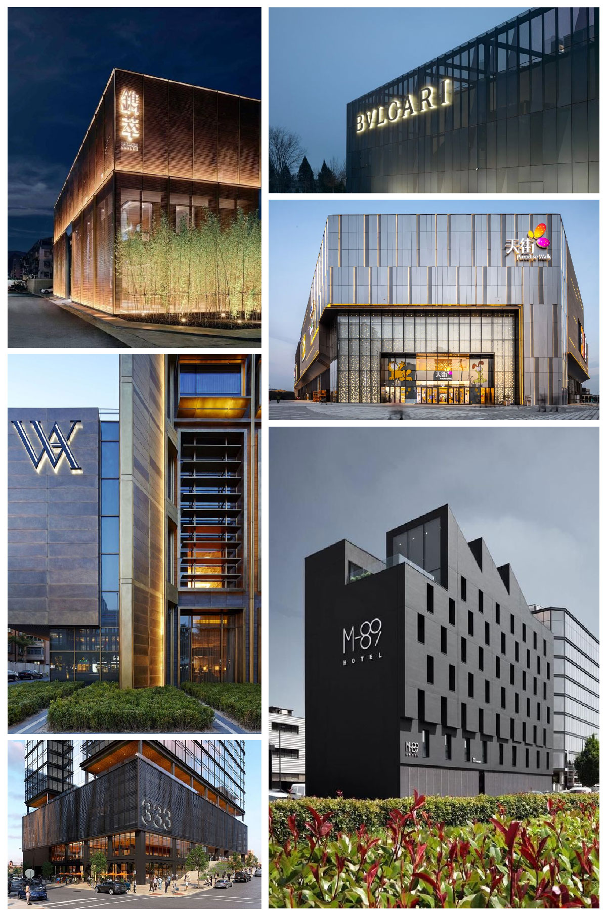中位樓體案名通常在處于戶外雨棚位置的上方的外立面,在中距離處可以清晰地看到