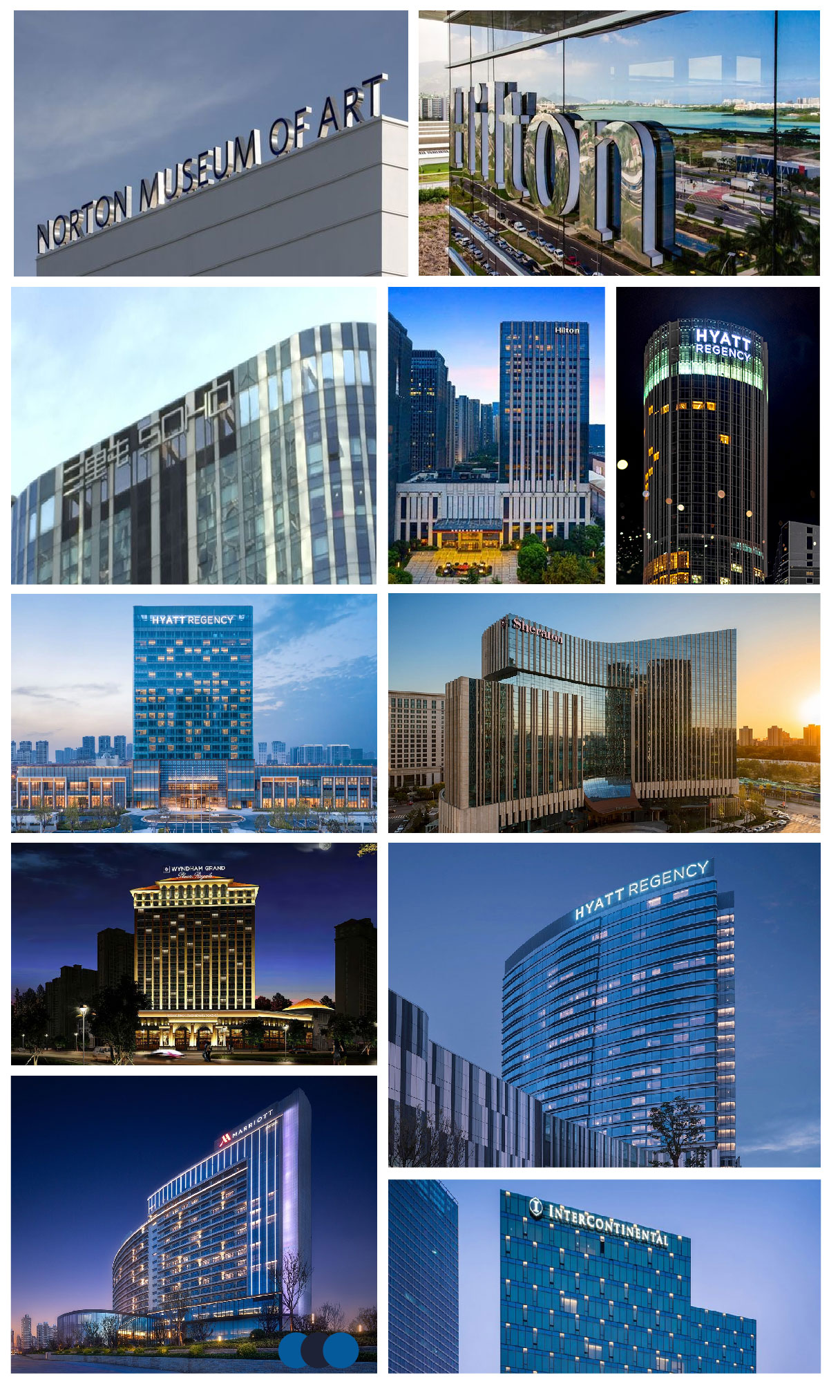 高位樓體案名處于建筑物地樓頂位置通常,是使用幕墻外部掛裝或是樓頂支架底座地方式來安裝,是建筑可以展示到較遠的位置。